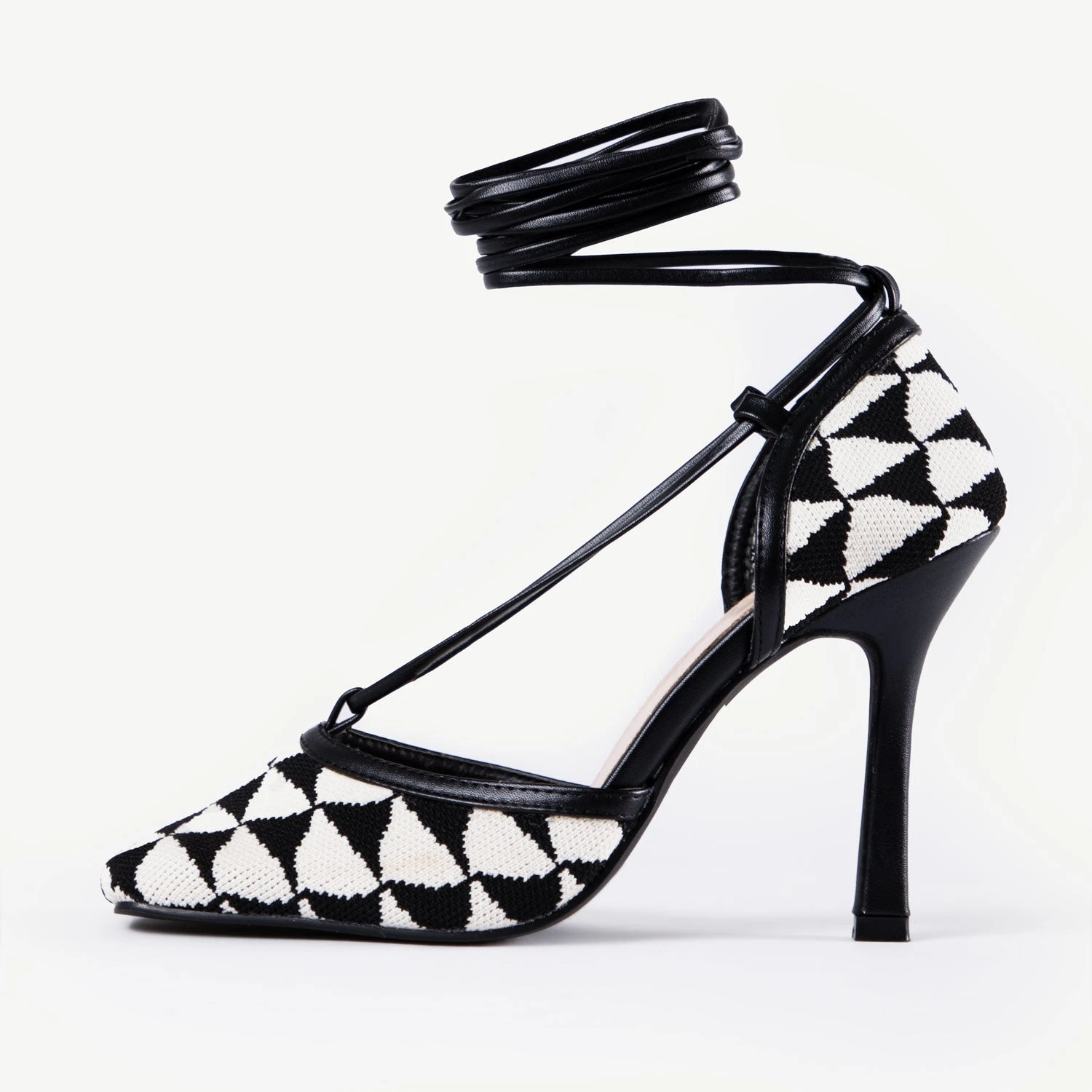 Be effortlessly stylish and make a statement in our RAID Cornell Heeled Pump. Crafted with a sleek black and cream knit design, this pump features a stiletto heel, a lace-up design, and a blocky print that is sure to turn heads. Step into confidence and be the star of the show!