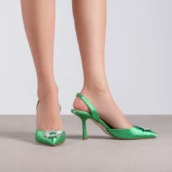 RAID Punam Heeled Slingback In Green Satin