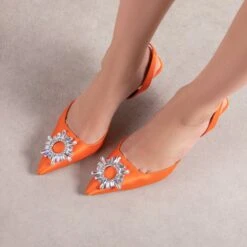 Punam sits pretty on a mid stiletto heel, covered in a luxury satin and a statement diamante embellishment. This is *the* heel to be seen in this summer. Perfect for making any occasion just a little bit more special.